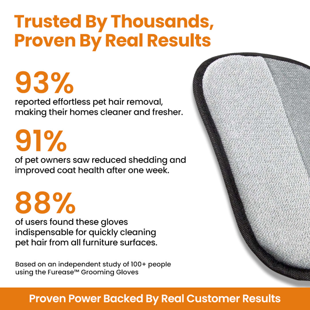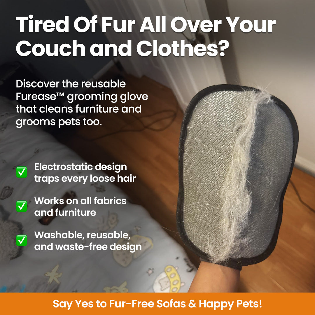 Furease™ Grooming Gloves minimize loose fur before it falls, helping you maintain a cleaner home while keeping your pet comfortable and well-groomed.